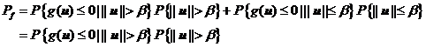 記標(biāo)準(zhǔn)正態(tài)空間的極限狀態(tài)函數(shù),F記失效域,則失效概率可由全概率公式寫成下列形式: