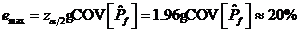 如果將失效概率估計(jì)值的變異系數(shù)設(shè)置為0.1,則在給定95%的置信水平的情況下失效概率相對誤差的極限值為[5]
