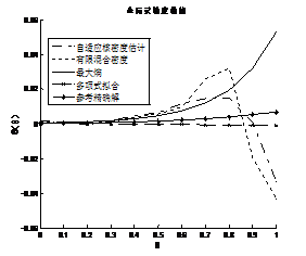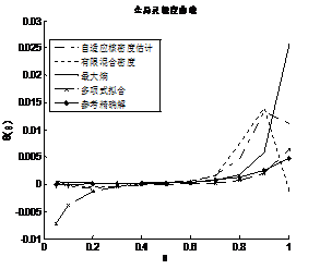 對(duì)于此工程算例,利用900個(gè)失效樣本點(diǎn)擬合概率密度函數(shù)和全局靈敏度。由圖8.7可以看出基于有限混合密度和自適應(yīng)核密度估計(jì)方法得到的失效概率函數(shù)曲線波動(dòng)較大,其他兩種方法雖也有較大誤差,但與參考精確解的曲線的趨勢(shì)較為貼近。由圖8.8可以看出基于最大熵密度估計(jì)法與正交多項(xiàng)式擬合概率密度法所得的全局靈敏度曲線與參考精確解的曲線相差不大,而基于有限混合密度法與自適應(yīng)核密度估計(jì)法得到的全局靈敏度仍然波動(dòng)較大。