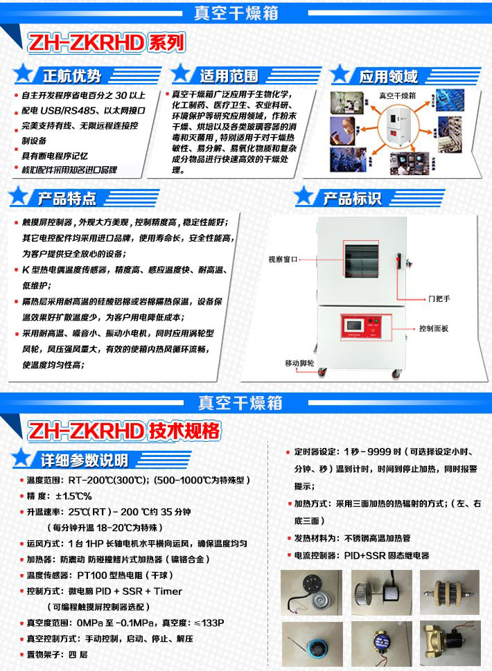 鼓風真空試驗箱廣泛應用于生物化學,化工制藥、醫(yī)療衛(wèi)生、農業(yè)科研、環(huán)境保護等研究應用領域,作粉末干燥、烘培以及各類玻璃容器的消毒和殺菌用。特別適合于對干燥熱敏性、易分解、易氧化物質和復雜成分物品進行快速有效的干燥處理。